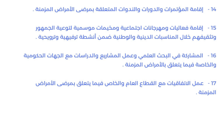 3- المساهمة في تطوير الخدمات الطبية لمرضى االأمراض المزمنة